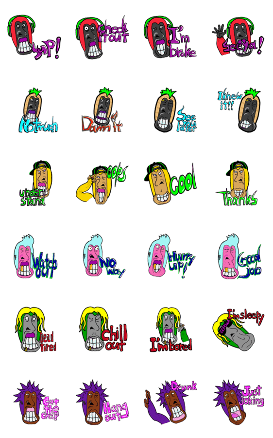 ゴリゴリの歯をしたゴリラ達のスタンプです。 作者は英語わからないので、活用できるかわかりませんが・・・W