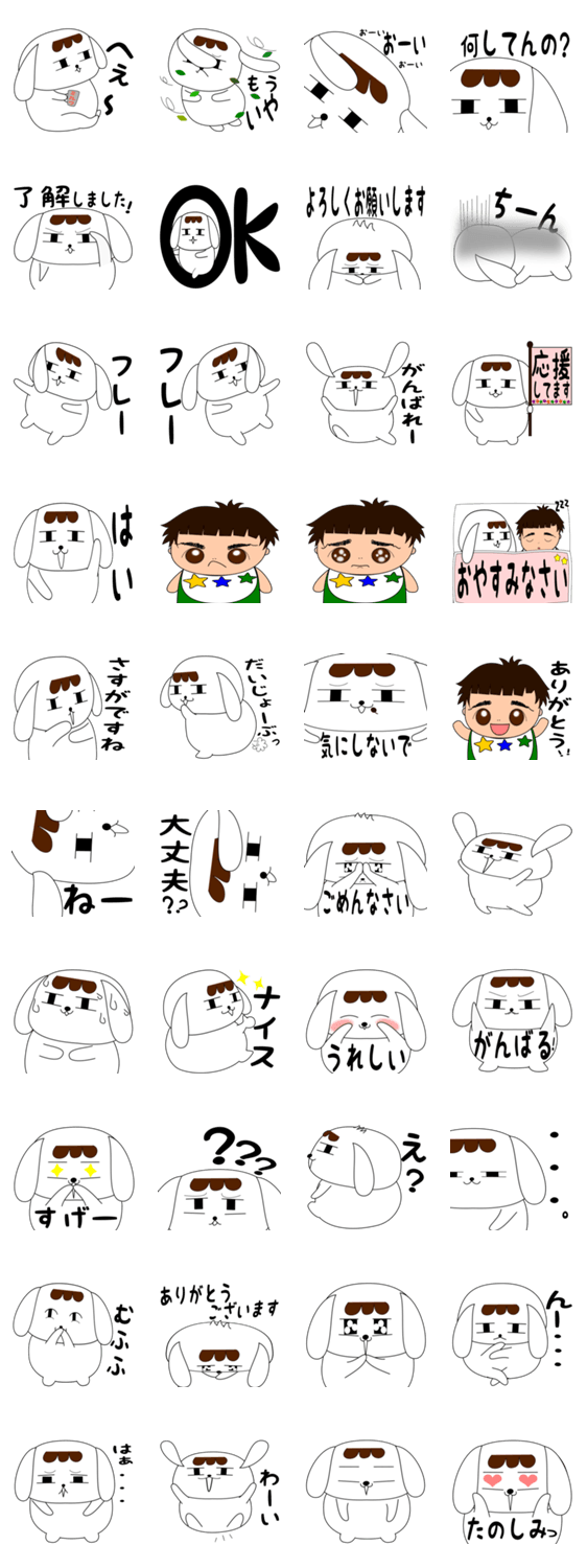 ぽっちゃりな白い犬と小さい男の子は仲良しです。
