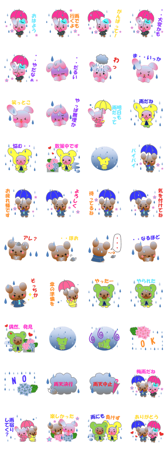 うさぎとくまのスタンプです。梅雨バージョンです。