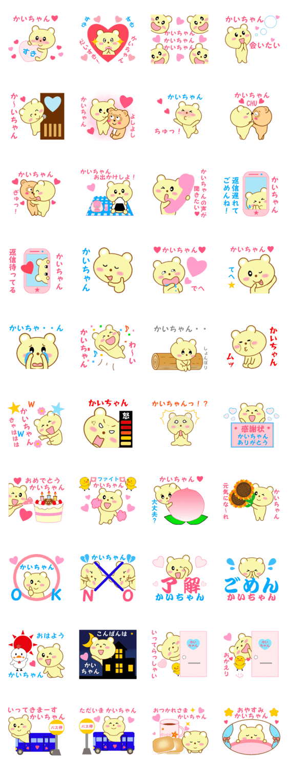 大好きな「かいちゃん」に送るためのお名前スタンプ。カップル・彼氏と彼女・友達、家族でどうぞ!かいちゃんが使うことも可能。