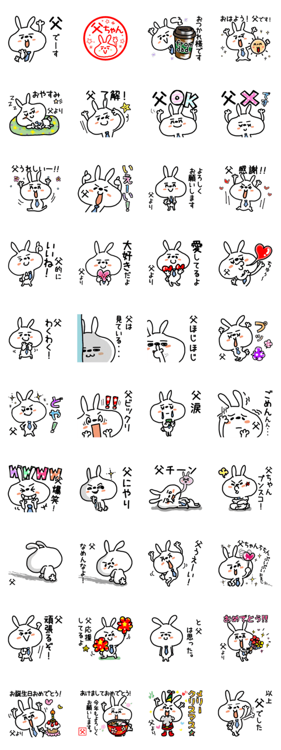 父と呼ぶ、お父さん/おとうさん/お父/おとう/おとん/父親/パパ/ダディ/father、さん/ちゃん、が使うと楽しい緩い兎の名前スタンプ。父の日、お誕生日、プレゼントにも!