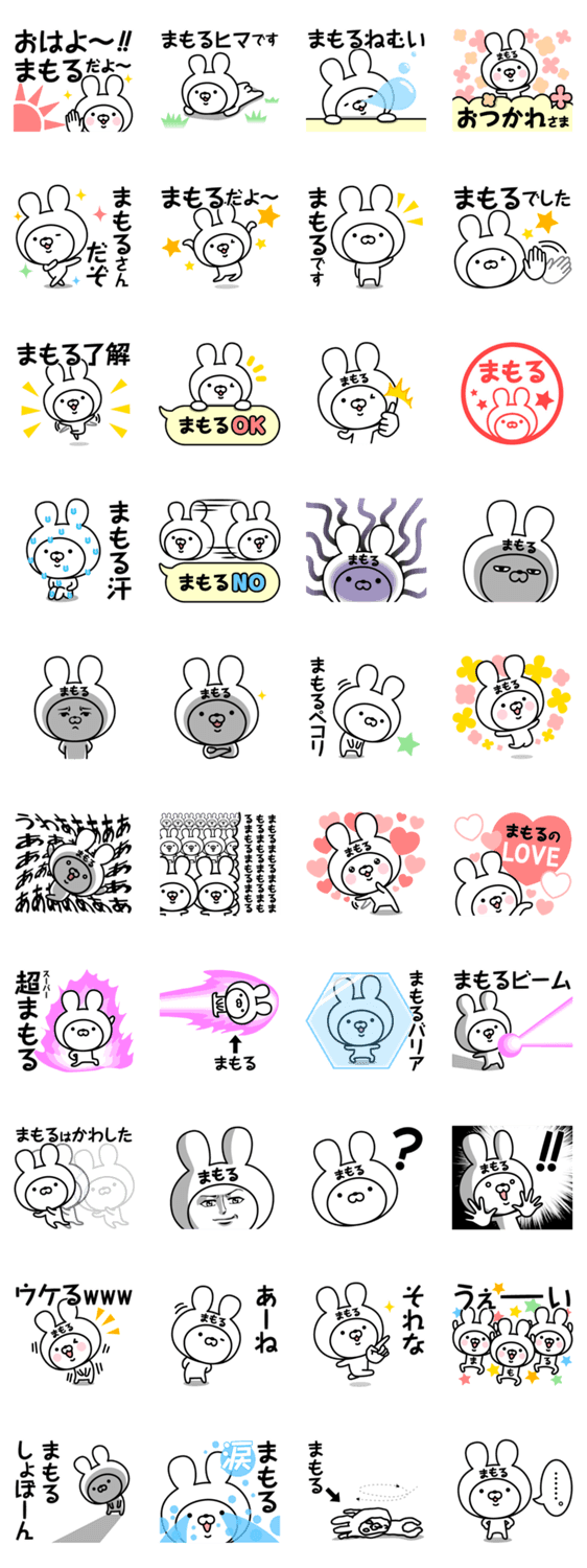 【まもる】の名前うさぎ -LINEスタンプマニア