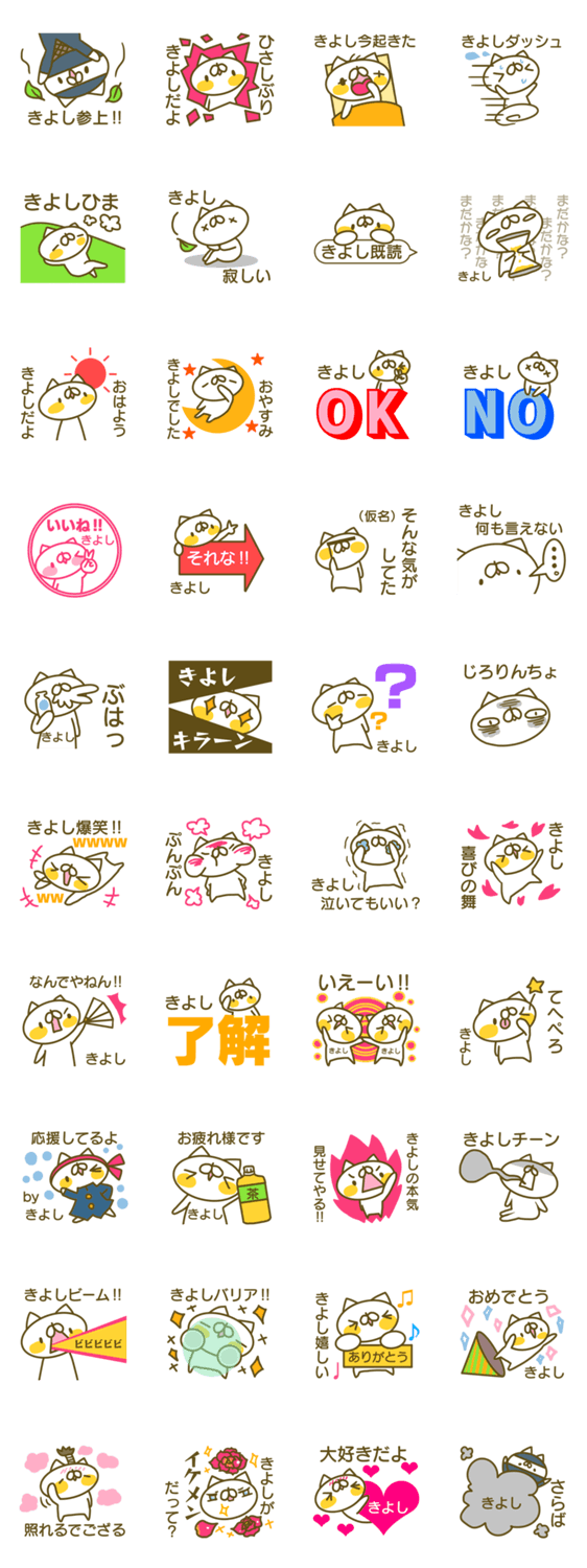 (清、潔、聖、清志、清司、喜好、嘉好)きよしさんのお名前スタンプ。きよしさんが友達や知り合いに送るスタンプ