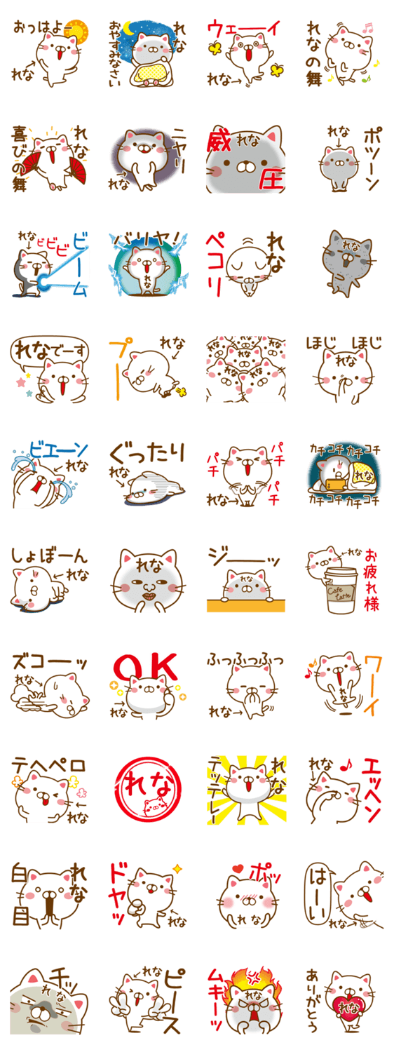 れなさんが使うスタンプ。麗奈,玲奈,怜奈,玲菜,礼奈,怜南,令奈,伶奈,怜那,恋奈,怜菜,麗菜,礼菜など全国のれな専用名前スタンプ