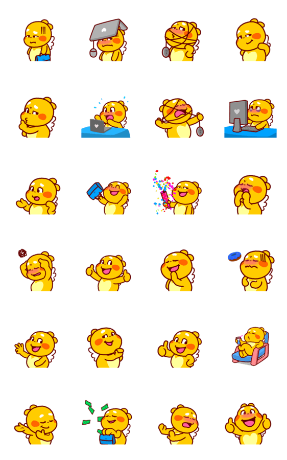 QooBee is a chubby dragon cupid who loves to eat donuts. The donuts make him extremely overweight until he cannot fly anymore...