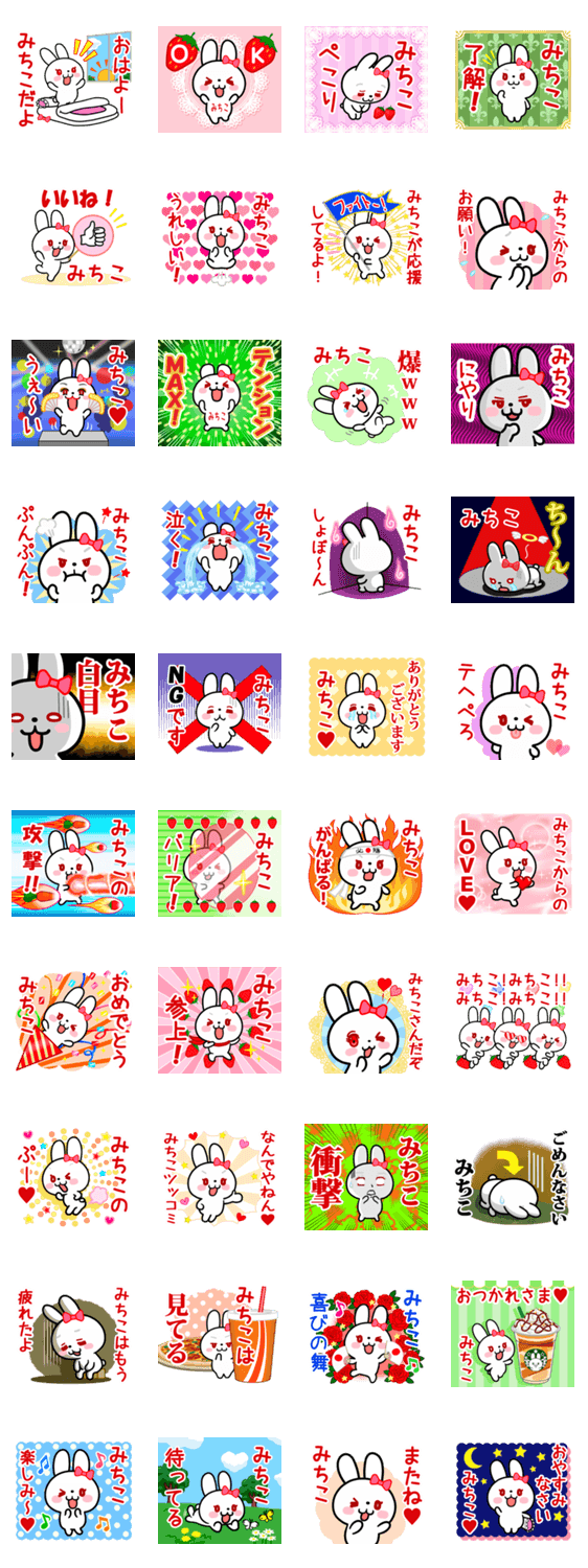 「みちこ」ちゃん用 白うさぎ -LINEスタンプマニア