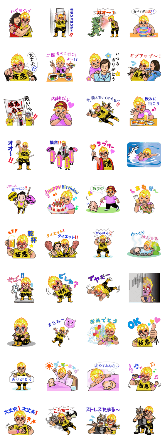 伝説の女子プロレスラーでありヒールのカリスマ、ダンプ松本と愉快な仲間たちの可愛いスタンプ!!
