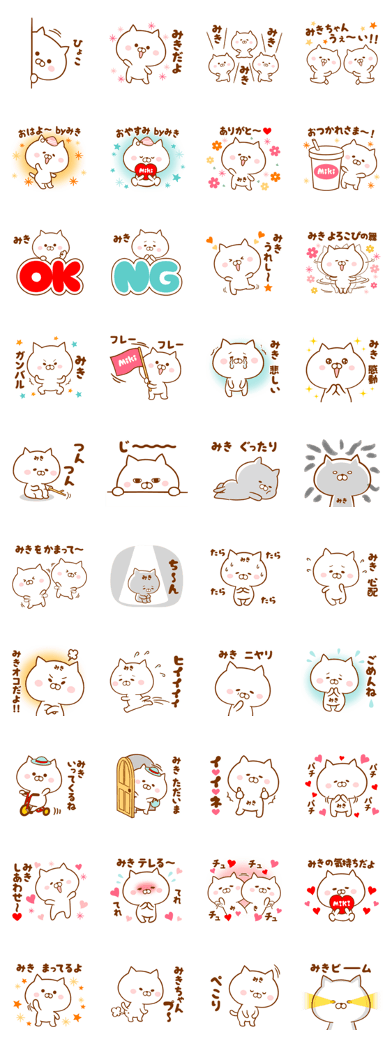 みき/みきこ/みきえ/みきよ/みきな/ミキ/美樹/美紀/三木等、みきが使う、みき専用のかわいい猫(ネコ)の名前・あだ名スタンプです。