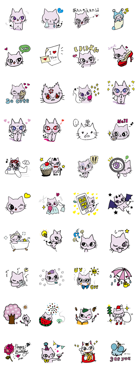 気まぐれでいたずら好きなこあくまねこ、ここちゃんのスタンプだよ〜