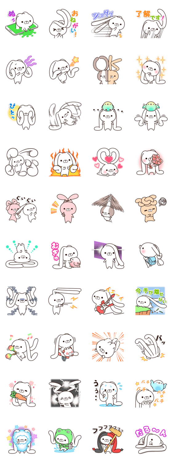 ゆるい、かわいい、耳なが~いウサギのスタンプ
