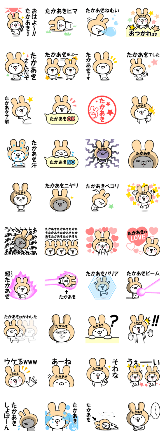 【たかあき】の名前うさぎ -LINEスタンプマニア