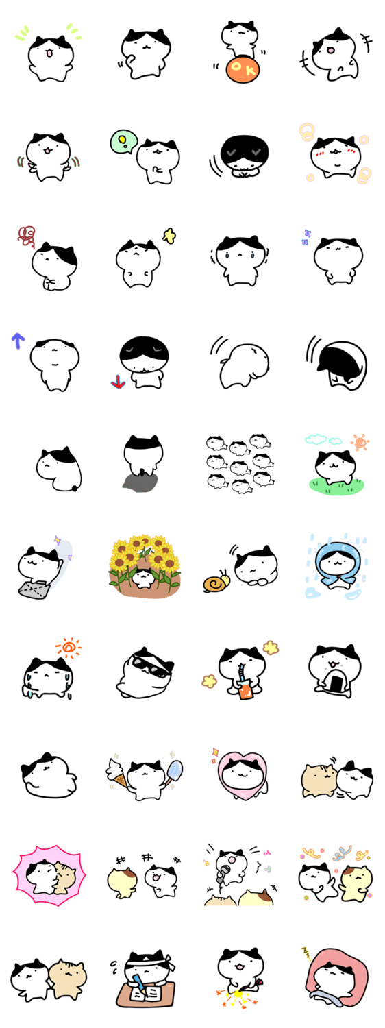白ネコのあいうえお・・・ってるスタンプ