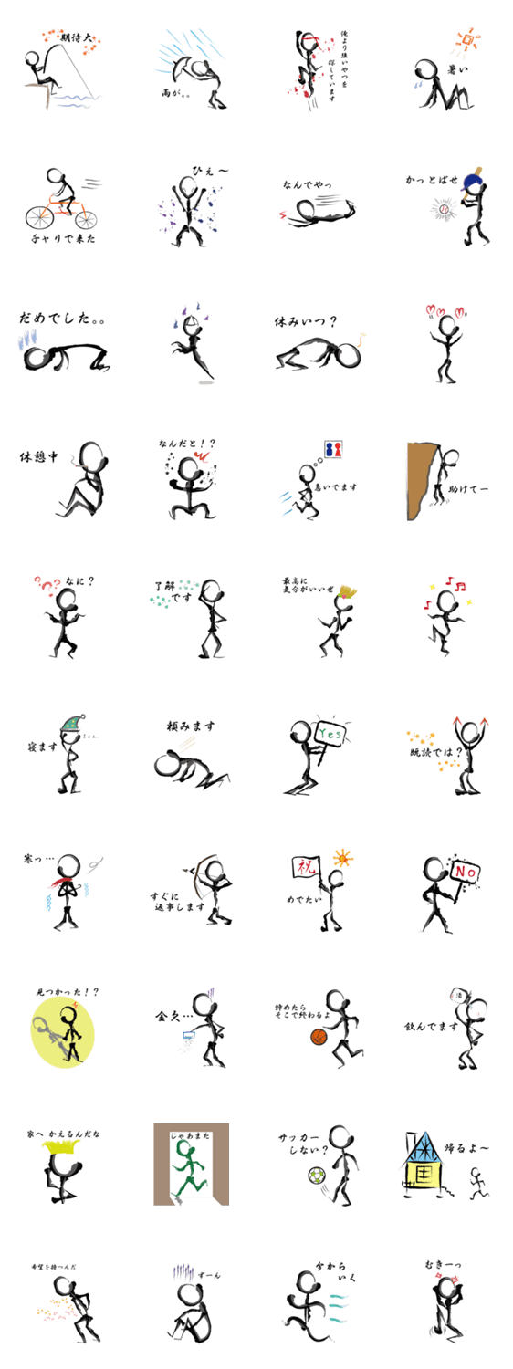筆で書いたっぽい棒人間のスタンプ。勢いが必要な時にどうぞ。