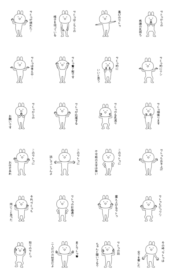 ウサギのサトゥは、佐藤さんが使う動くスタンプです!さとうでもサトウでもなく、今風に『サトゥ』と表現することでスタイリッシュに使いこなすことができます!