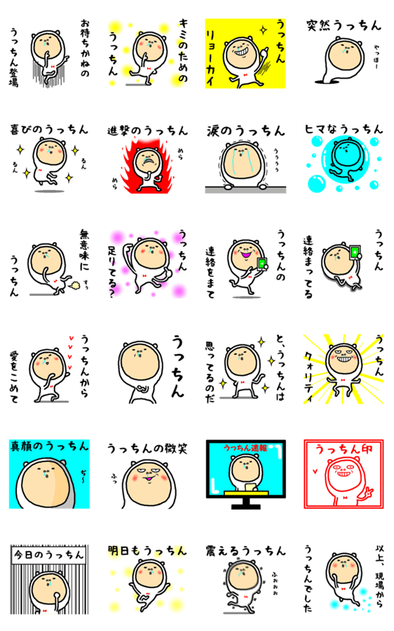 内田/内野/内村/内川/寺内/内間/内山/内倉/内久保/辻内/内園さんにオススメのうっちんスタンプ。他の名字・ニックネームもゆる~く展開中