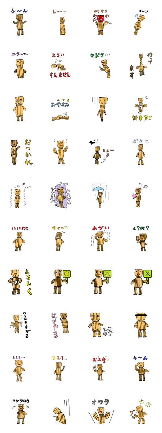 ワラでできたアレのスタンプです。ネタで友人に送ってみるなど、毎日のおともにぜひどうぞ!!