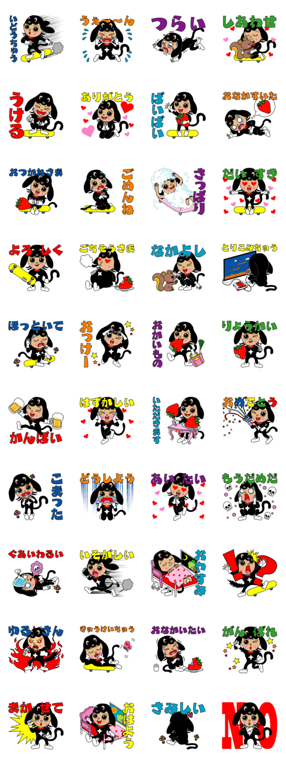 | スタンプ説明 | スケートボードとイチゴが大好きなブラッキーさんのスタンプです。 |