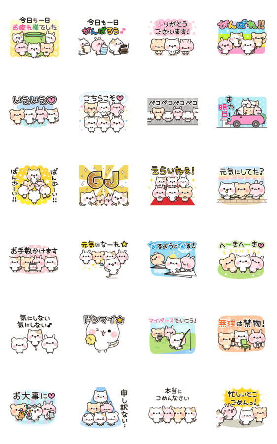 使うだけで簡単に気使い!気づかいのできるネコと友達のうさぎ・くまの、ちまちま可愛く動くやさしいスタンプ♪