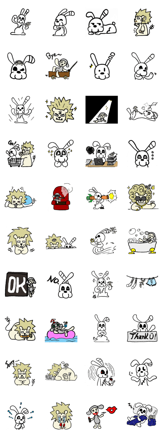 The stickers:: Skull the reborn rabbit, Sheep the doll and Dull the lion.