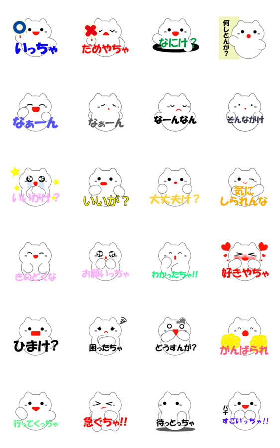 白ネコのあいうえお・・・ってるスタンプ