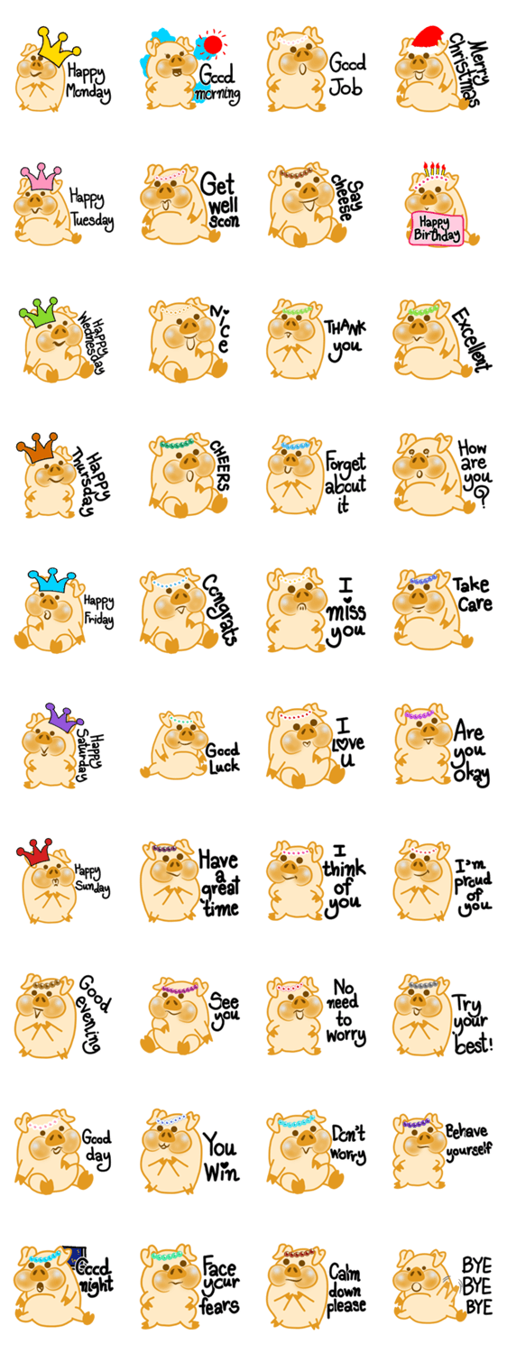 | スタンプ説明 | Send your season's greetings. An inspirational encouragement pig sticker to wish a good day. Christmas Birthday Congratulations. |