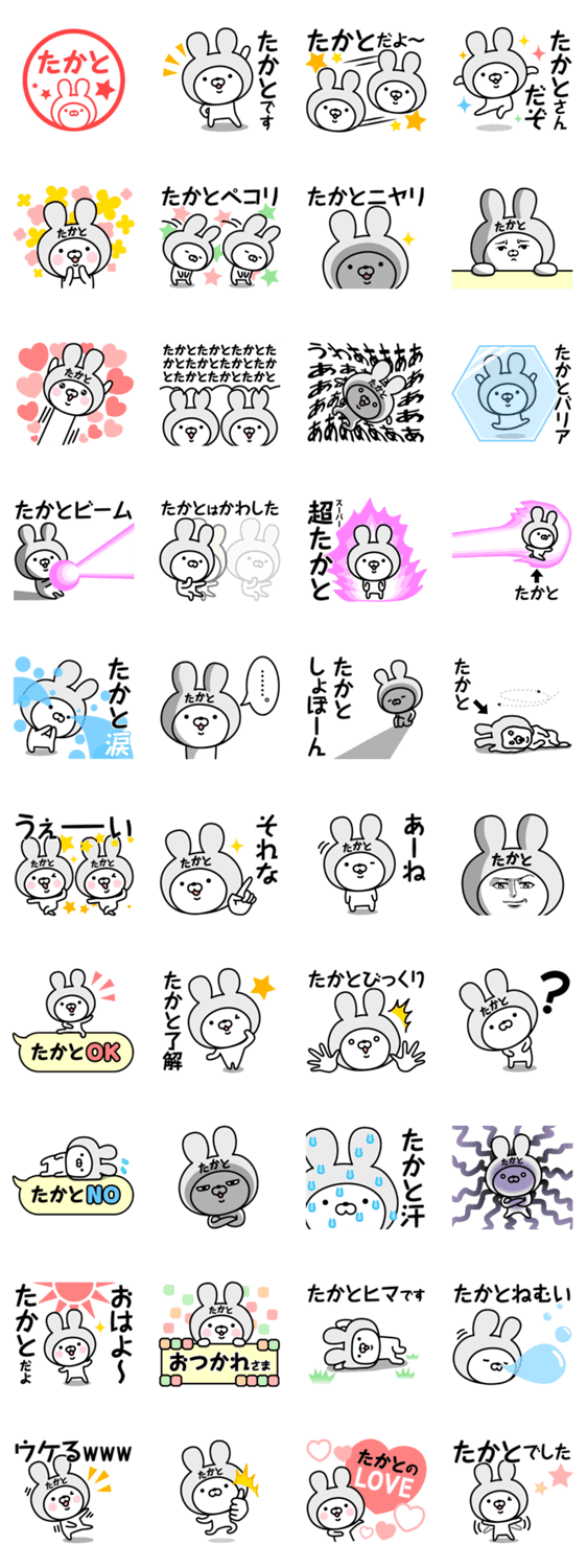 【たかと】の名前うさぎ -LINEスタンプマニア
