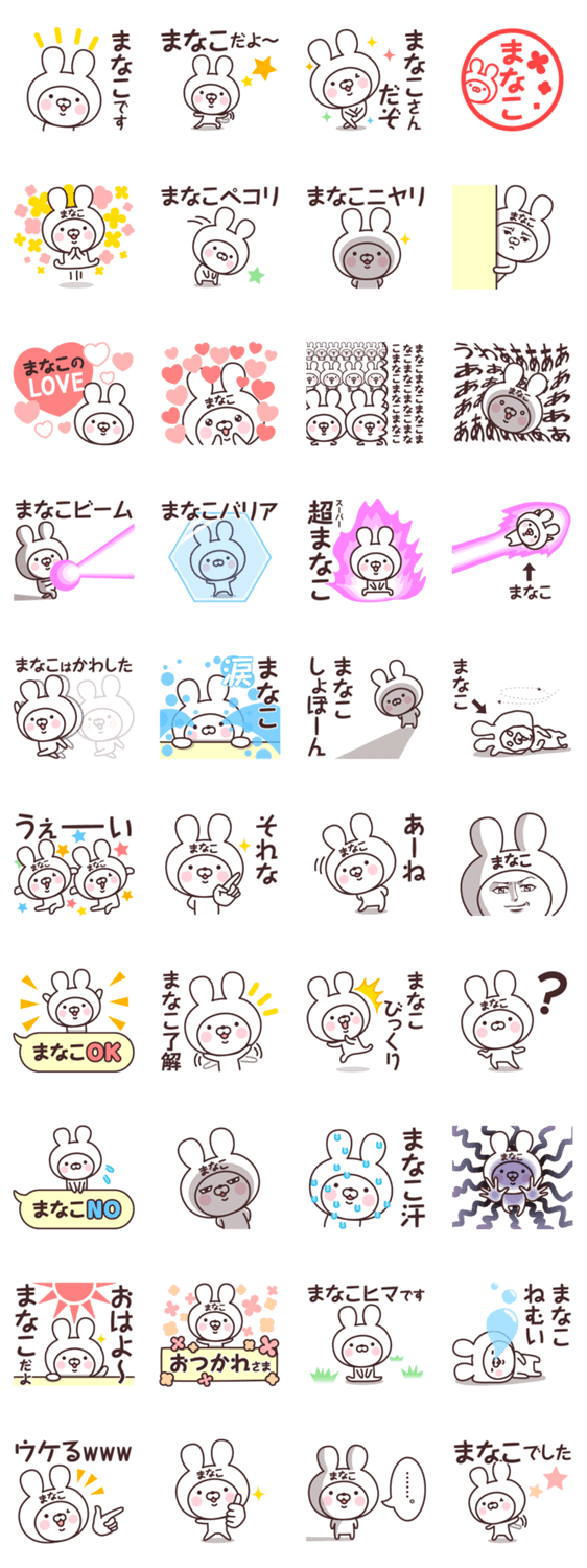 【まなこ】の名前うさぎ -LINEスタンプマニア