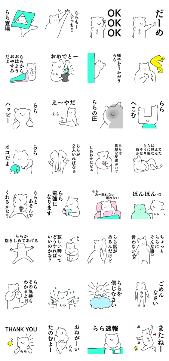 ららさんが使える名前スタンプです。ララ、ららこ、ららか、ららな、ららみ、楽々、羅々など。
