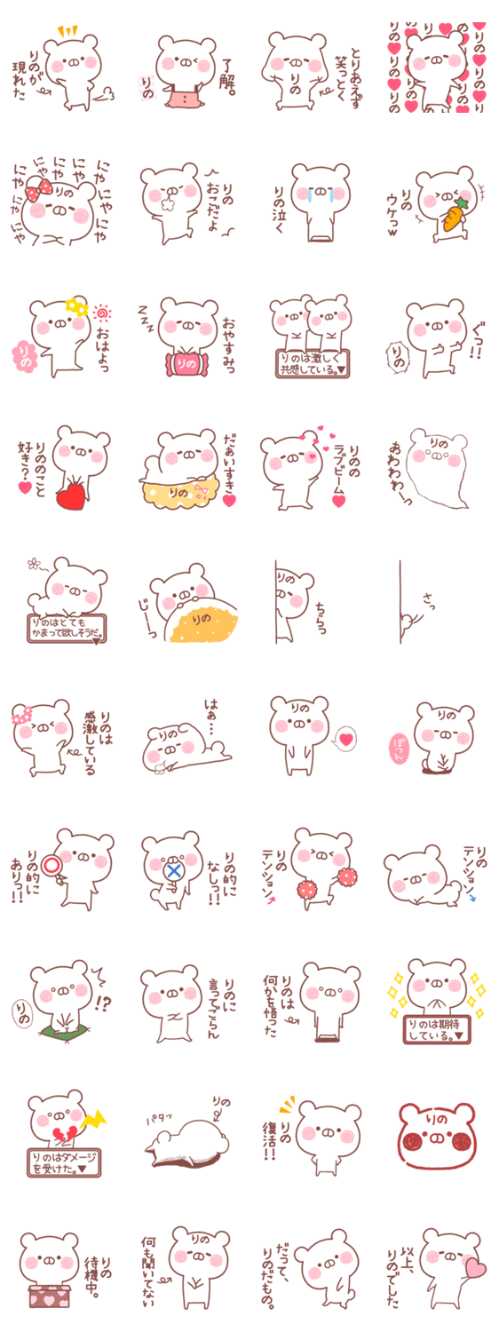 りのん、りのあ、りのか、りーちゃん、りっちゃん、りのちゃんが使える名前スタンプ。カップルやお友達ご家族へ、毎日使える自分専用スタンプです。