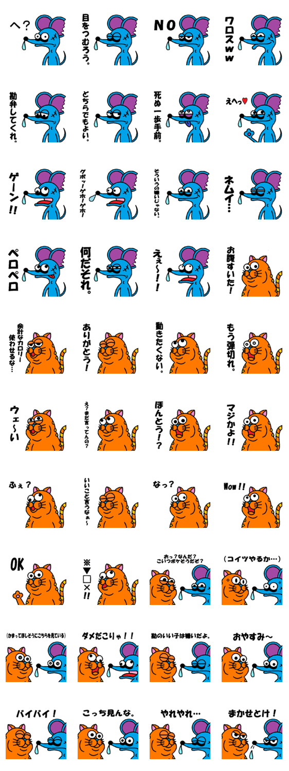 不健康ネズミと不摂生ネコお茶目なスタンプです!友達に送りつけて楽しんでください。