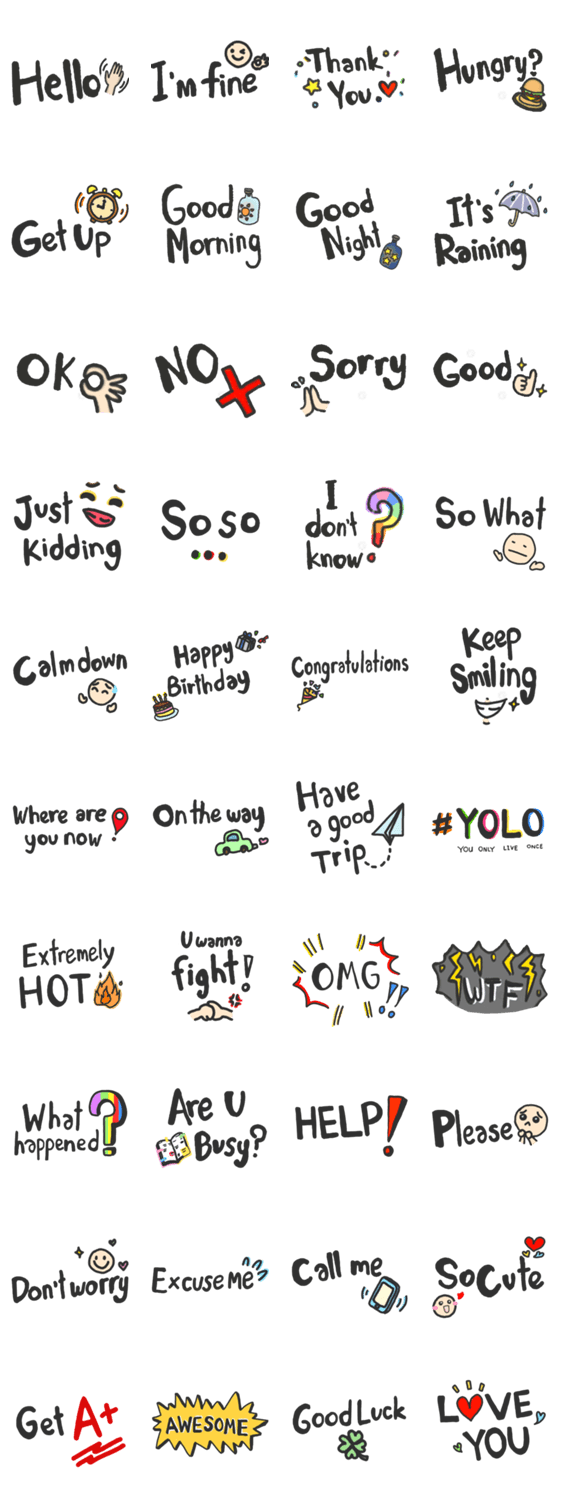 Daily words for your daily chat.These are stickers that can be use everyday.Please enjoy!