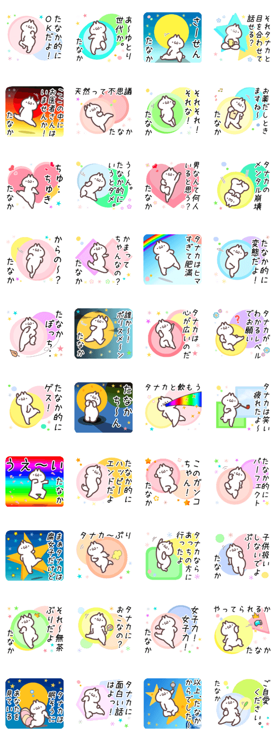 タナカ(田中、田仲、多中、太中)等が楽しく使用する為のニックネーム、あだ名、たなか専用名前スタンプです。これを使ってライン生活を存分に楽しみましょう。