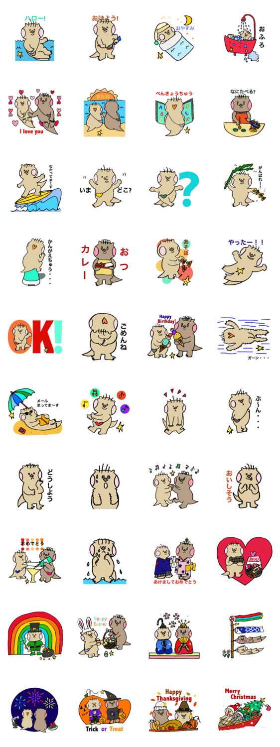 かわいいラッコのベビー、アオちゃんと大好きなお母さんのステッカー。友達のスターフィッシュも時々一緒。シーズンステッカーもあるよ。