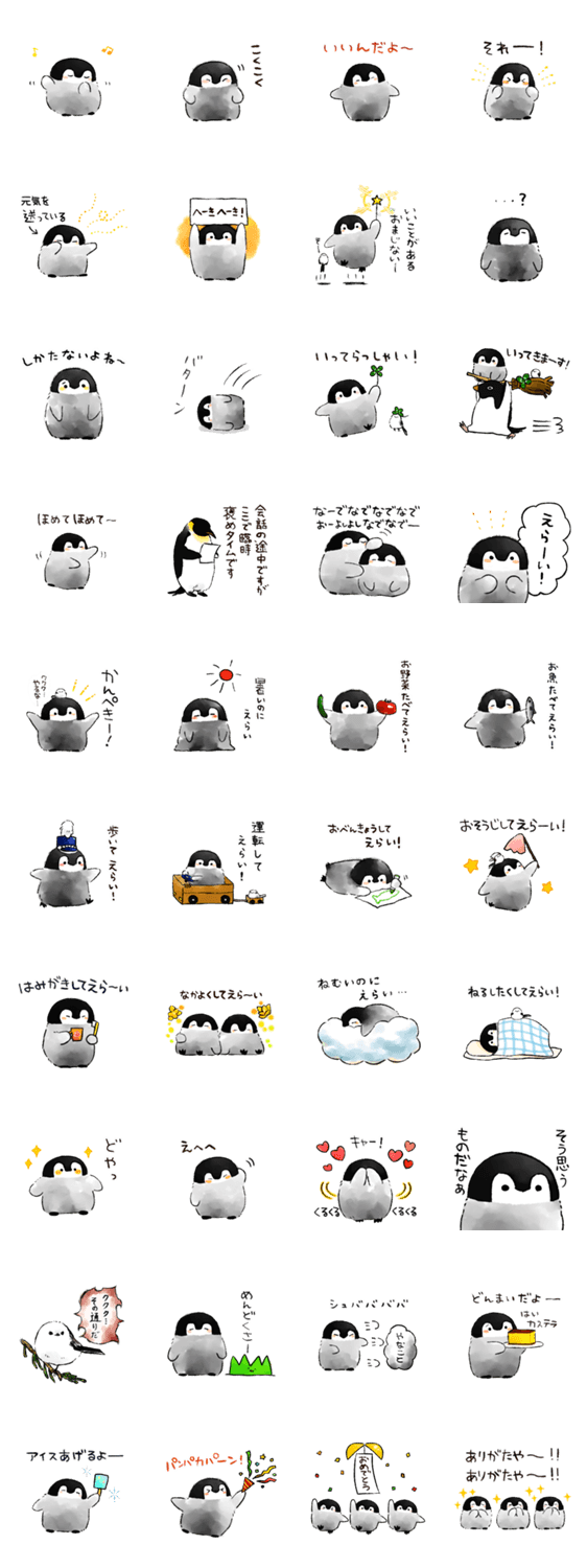 生きとし生ける人々を、肯定したり褒めたり労わったりちやほやしてくれるコウテイペンギンちゃんたちのスタンプ第2弾です。 邪(よこシマ)エナガさんもいるよ!