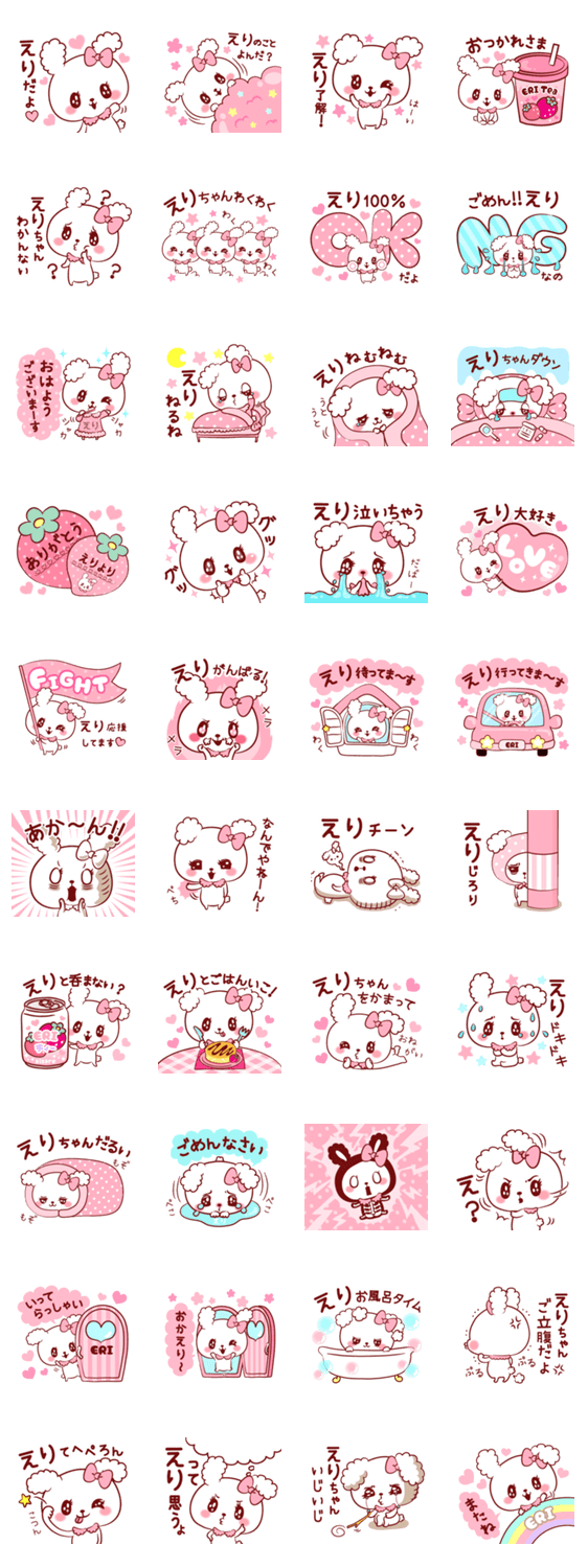 えりちゃんが使う名前スタンプ。えり、えりこ、えりか、えりなのなまえの方どうぞ。愛嬌あるえりちゃんスタンプでみんなにえりちゃんのかわいらしさを伝えよう。