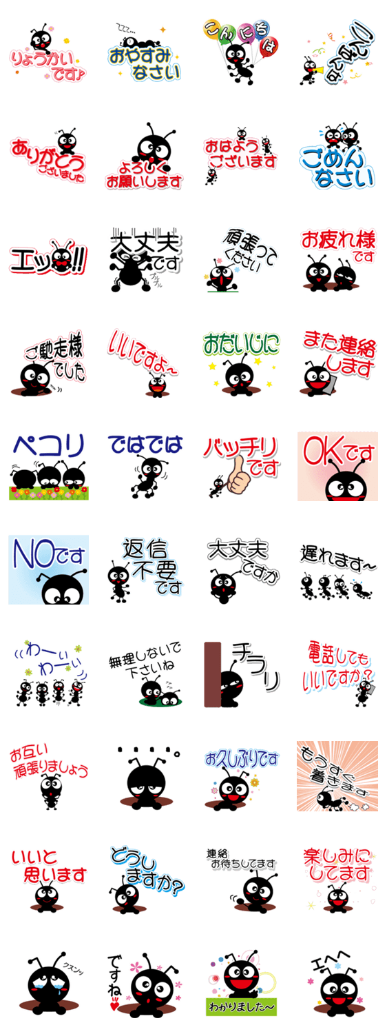 | スタンプ説明 | ちっちゃなちっちゃなありんこぉ~。敬語バージョンです。 |