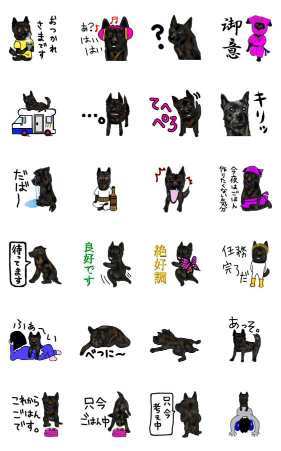 甲斐犬ぺろたんのスタンプ。ぷっ!っと笑えて、案外使えそうなスタンプ。