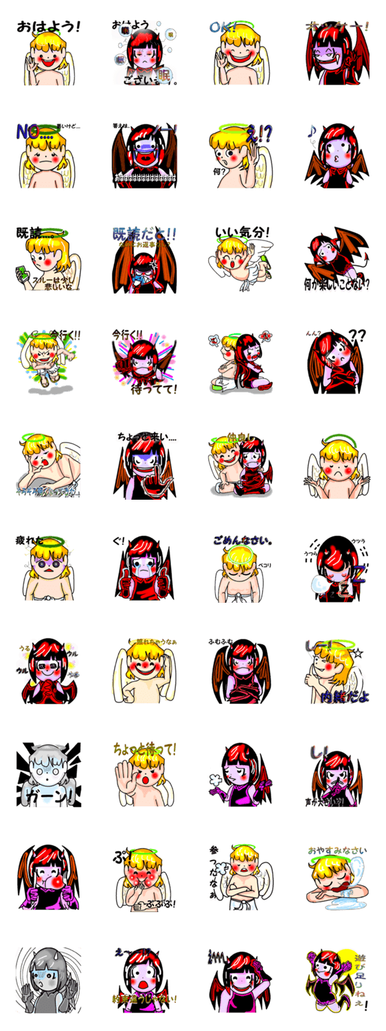 スタンプ説明 天使のてんちゃんと悪魔のあっちゃん