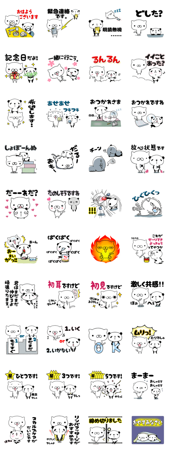 白猫(ぬこ)と子パンダのスタンプ第2弾。 またまたへんてこスタンプ出来ました! 笑える使える可愛いスタンプです。