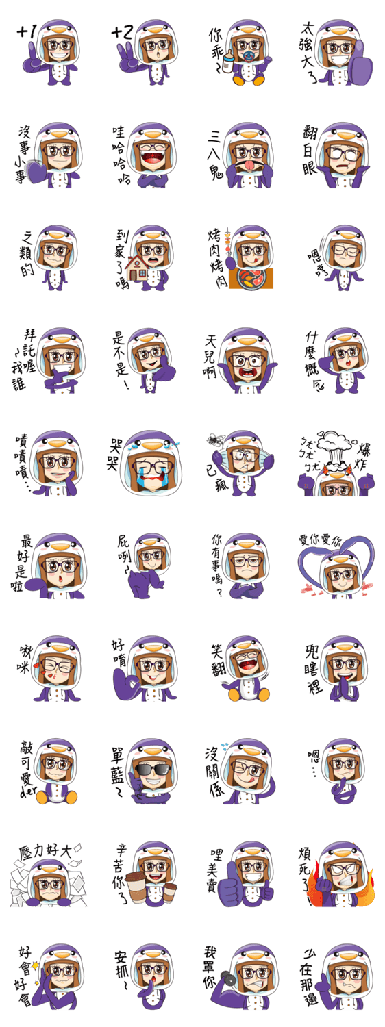 Purple in Penguin Costume -LINEスタンプマニア