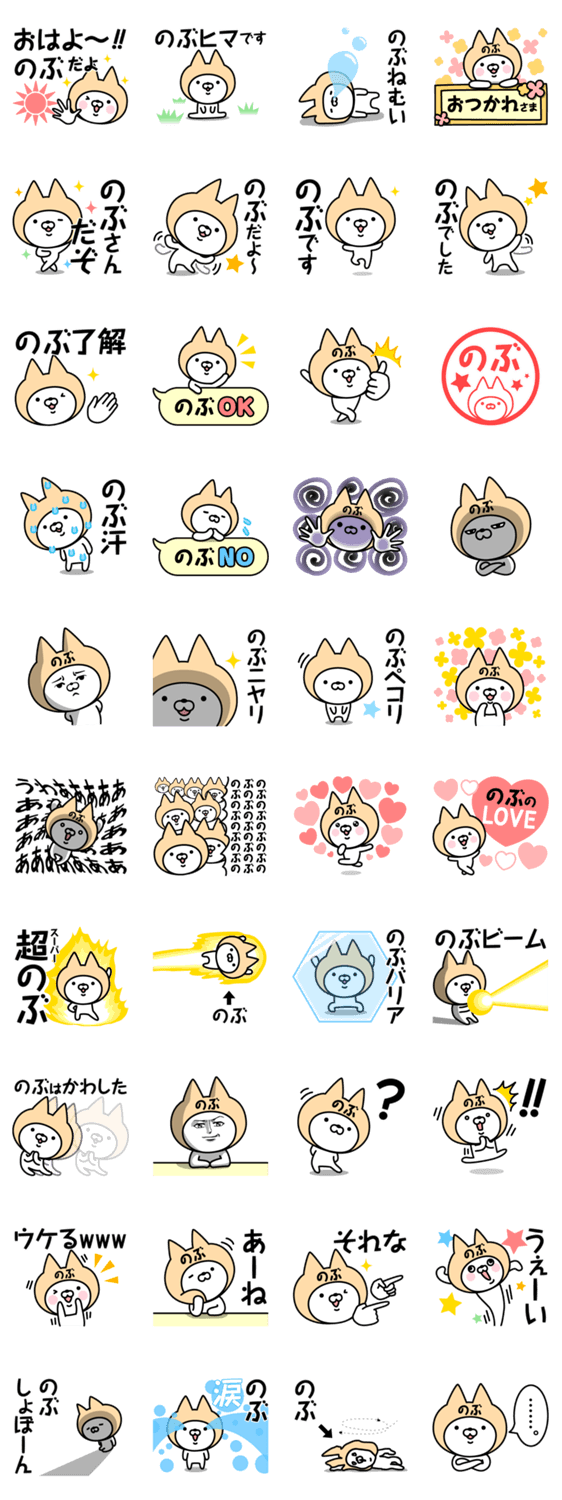 のぶさんが使える名前スタンプです。ノブ/のぶお/のぶゆき/しのぶ/よしのぶ/のぶひろ/のぶこ/まさのぶ/しのぶ/ひろのぶ/たかのぶ/としのぶ/かずのぶ/やすのぶさんはぜひ。