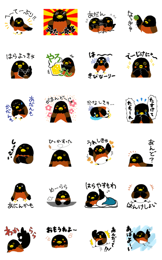 八丈島の方言をつかったスタンプです。キャラクターはアカコッコです。