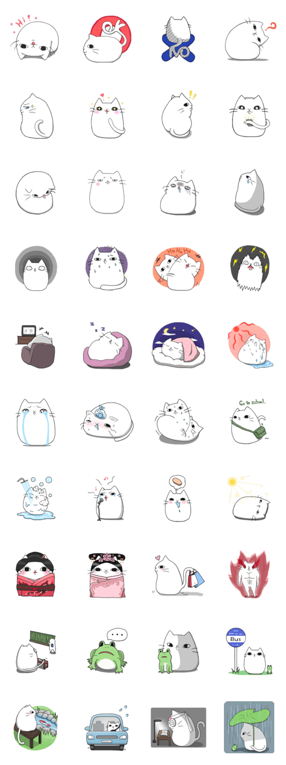 白ネコのあいうえお・・・ってるスタンプ