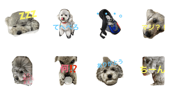 マイドッグ・パズーのスタンプです。トリミングにより、別の犬に見えるかもしれませんが全て同一犬・パズーです 。