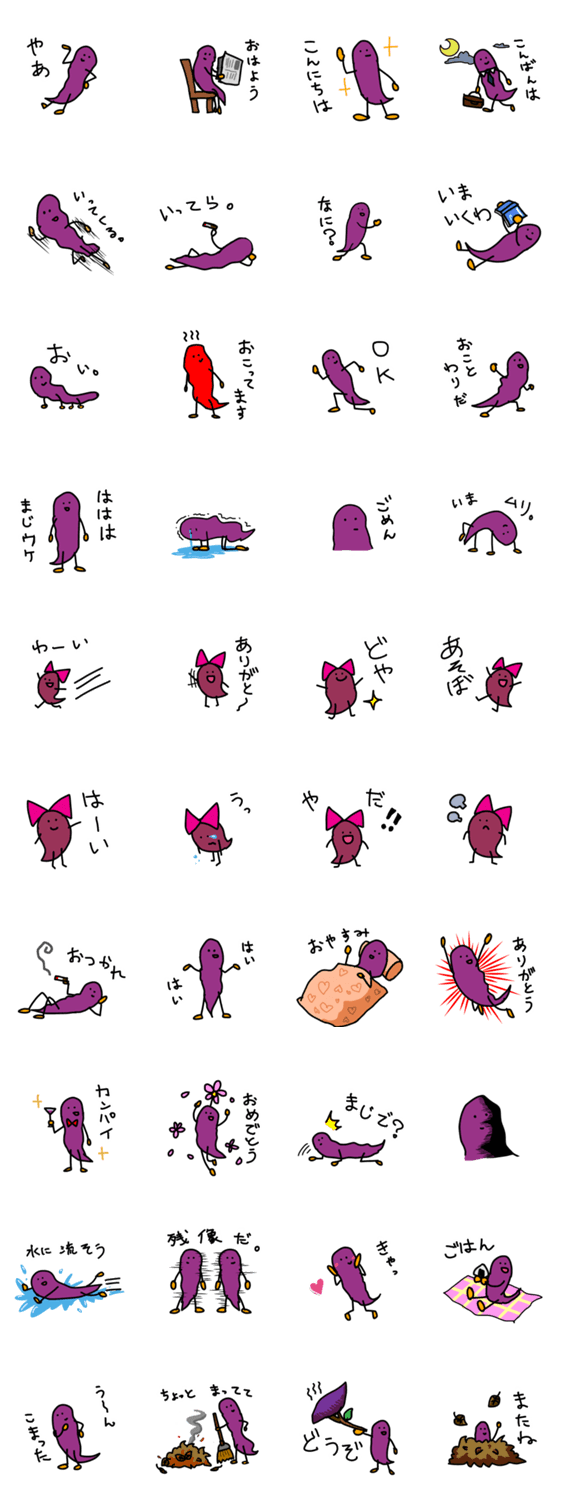 可愛いようで、微妙に人をイラッとさせたり謎の行動をとる、そんな変なさつま芋のキャラスタンプです。何を考えてるかわからない兄と、感情豊かな妹……らしいです。