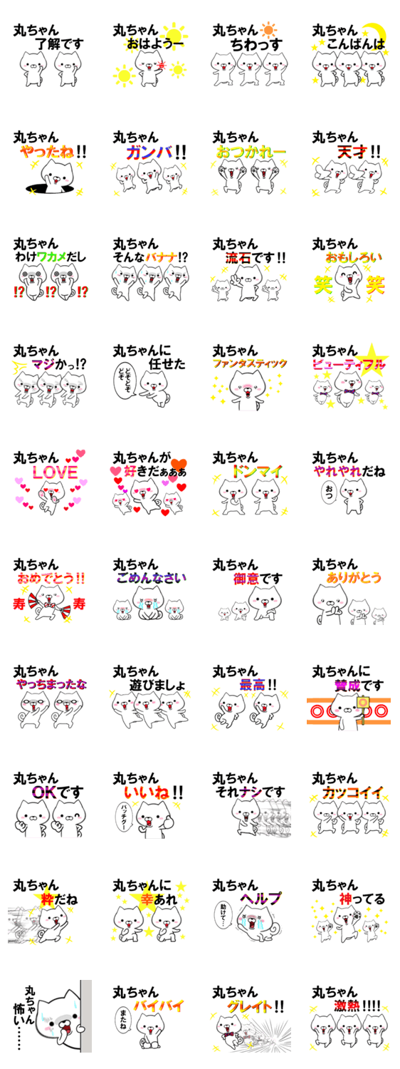 名前が丸・丸井・丸山・丸中・丸本・丸藤・丸崎・丸川・丸内・丸谷・丸田・丸口・丸橋・丸島・丸野・丸岡・丸原など、あだ名が丸ちゃん(マルちゃん)に使えるスタンプです。
