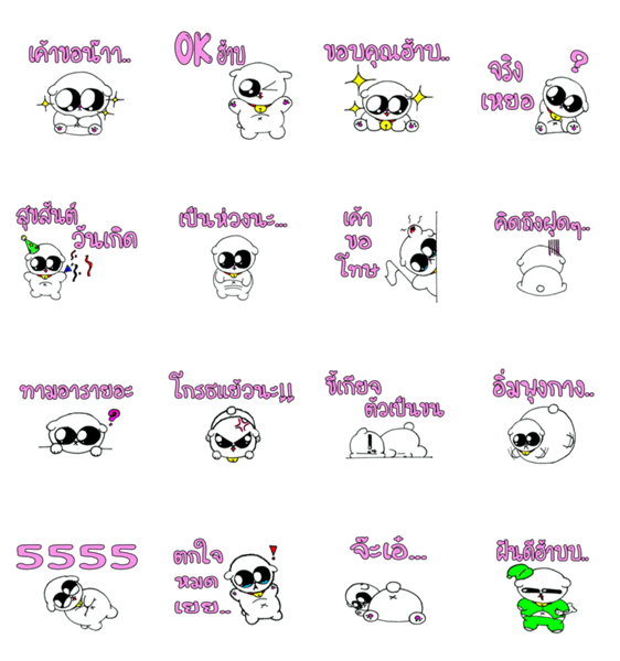 白ネコのあいうえお・・・ってるスタンプ