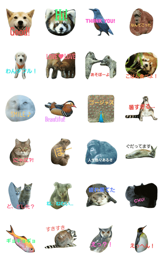 ほんわり楽しくてかわいい動物や面白い動物の写真スタンプ