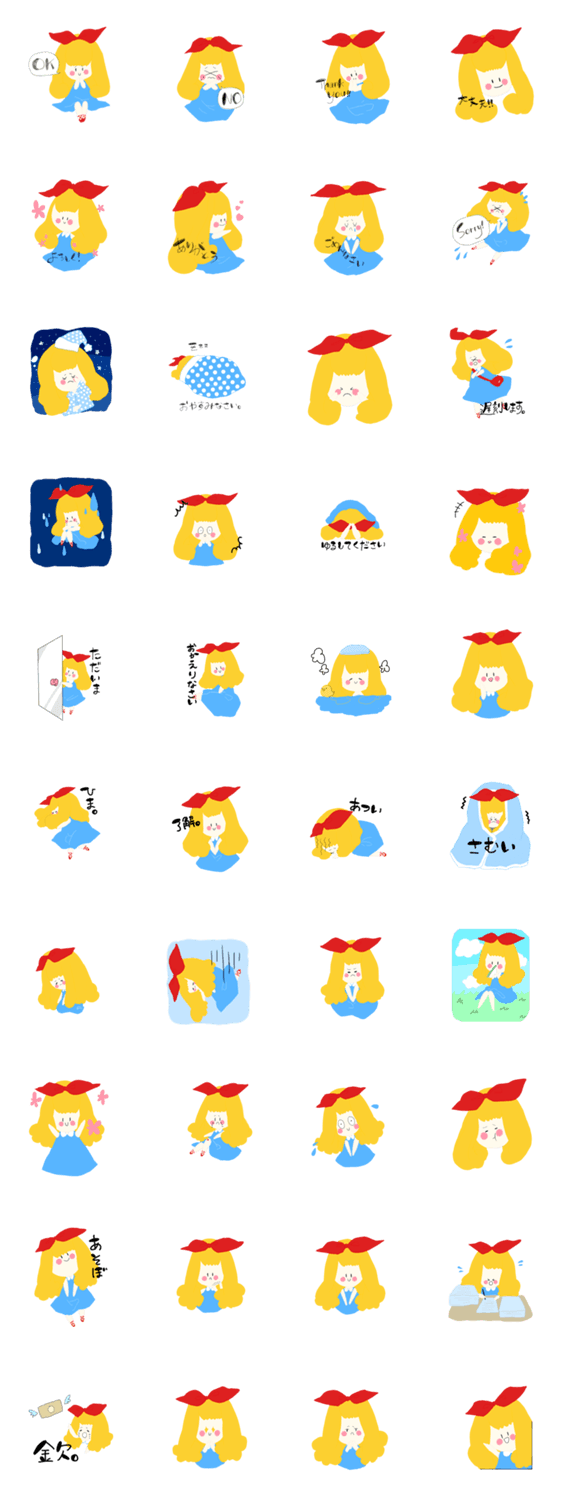 泣き虫な女の子リリーの、実用的な可愛いスタンプ。