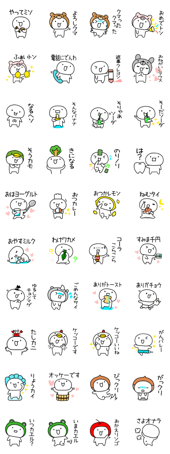 真っ白なしろくてまるいキャラクター「しろまるこ」の無難に毎日使える「だじゃれ」のスタンプです。